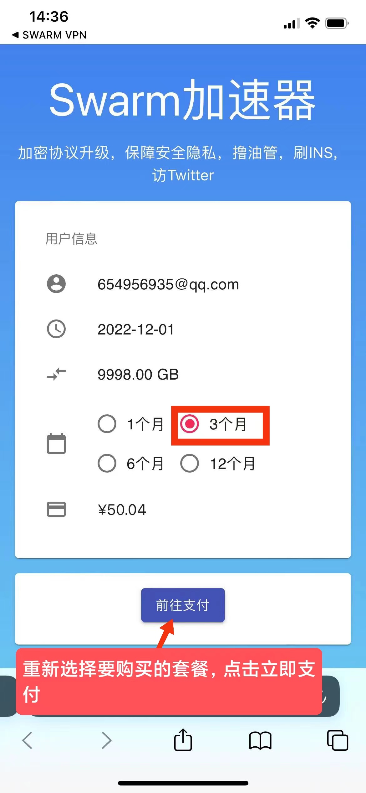 5、重新选择要充值的套餐,点击立即支付